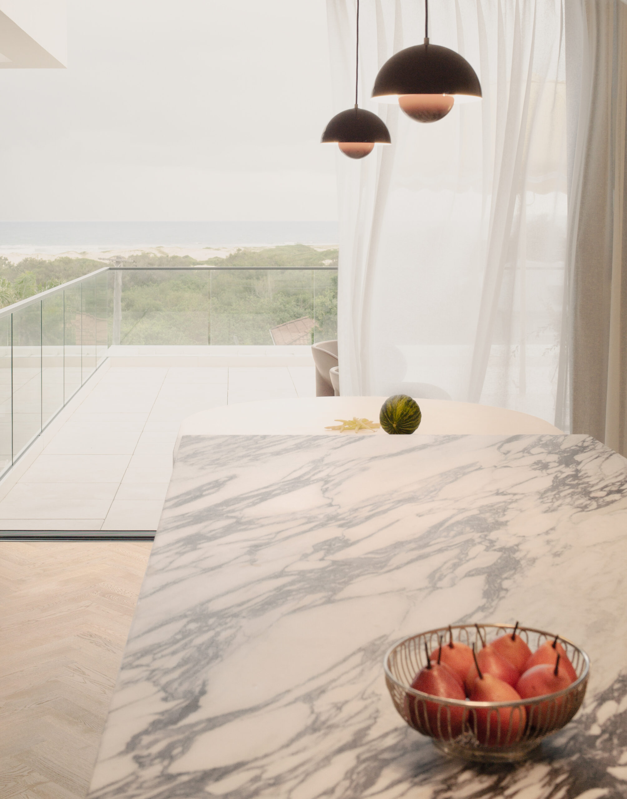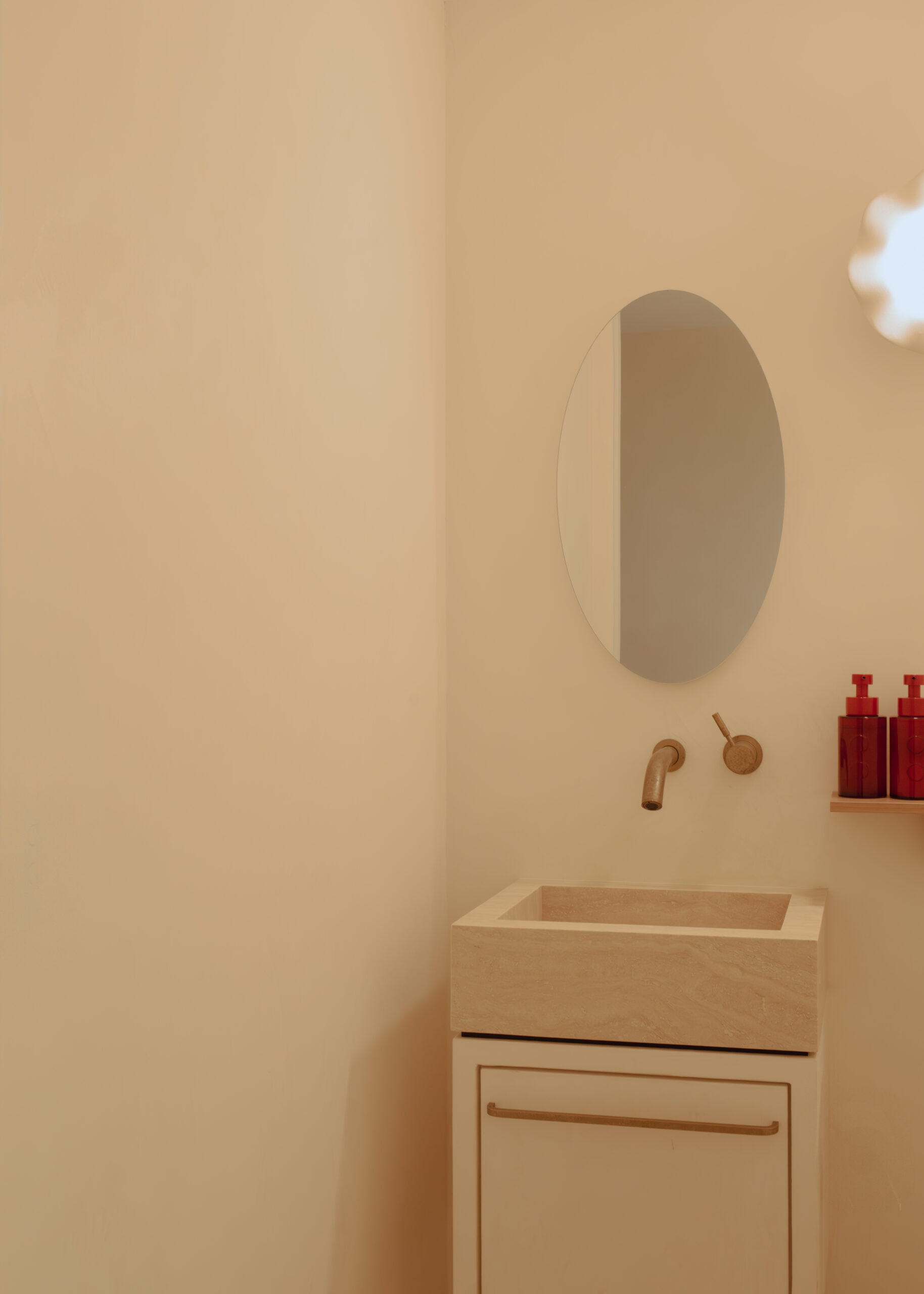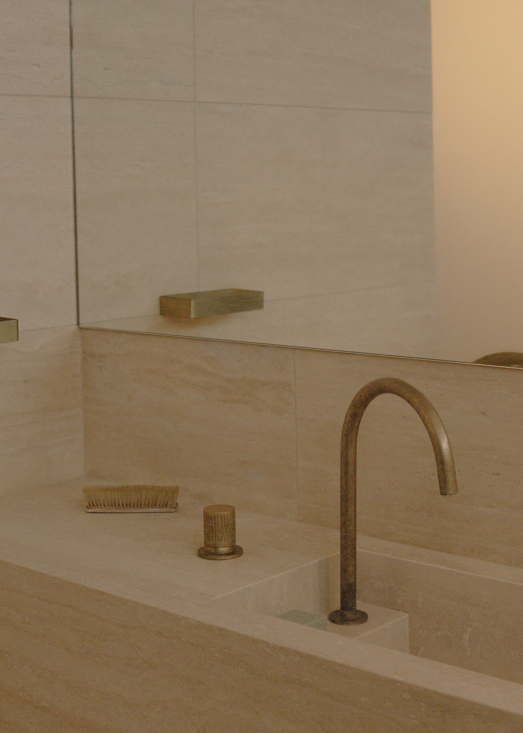 There are moments of surprise throughout: a junction of textures, a bespoke element, a window framing the sea. Bold gestures are softened through proportion and restraint, allowing the overall experience to feel calm, grounded, and considered.