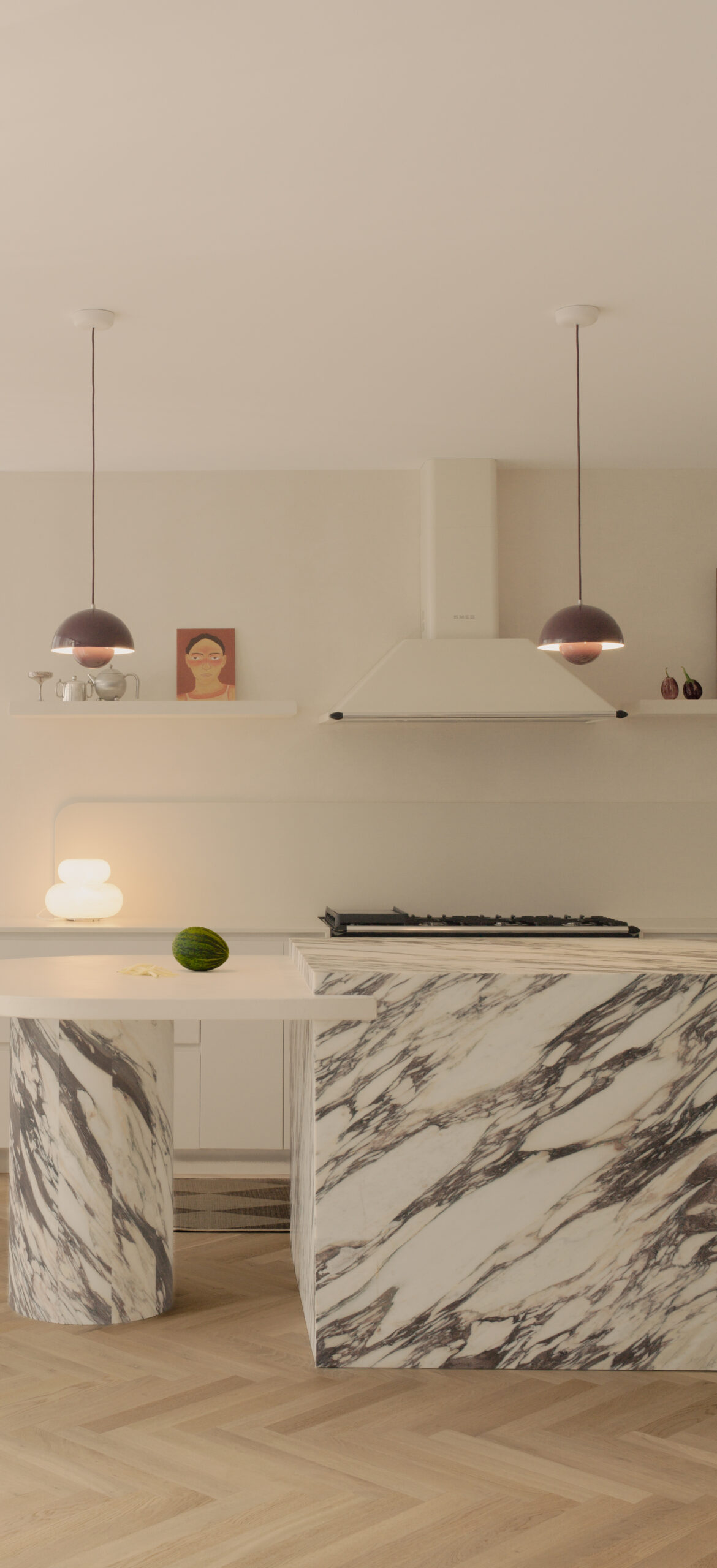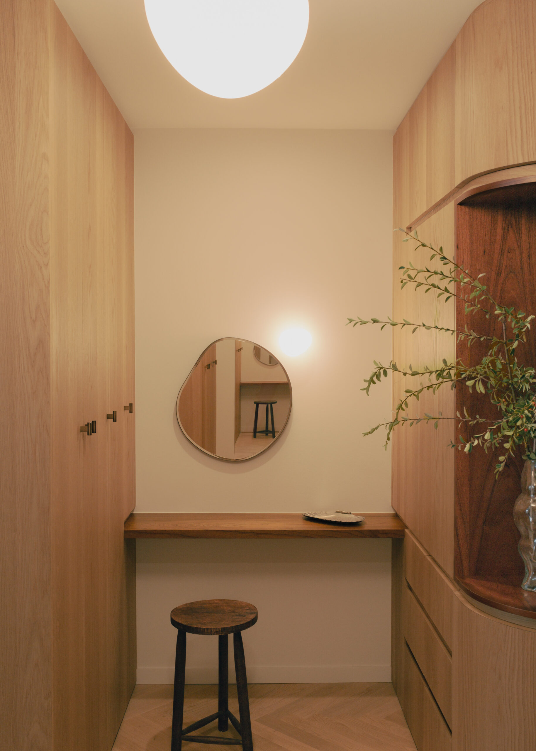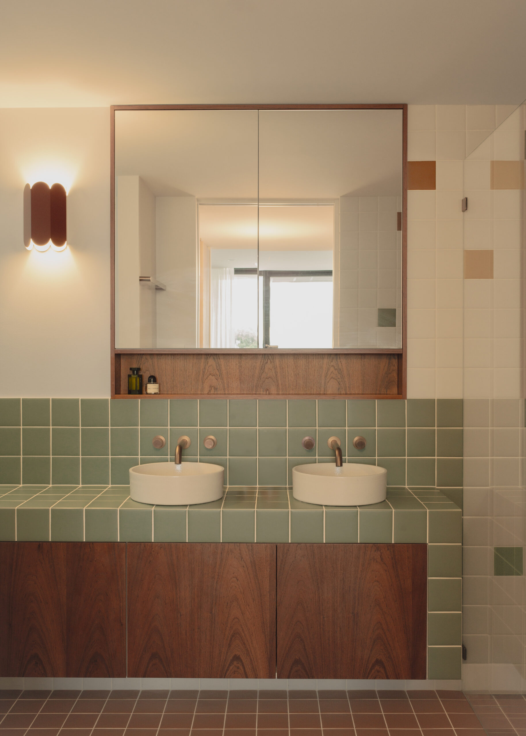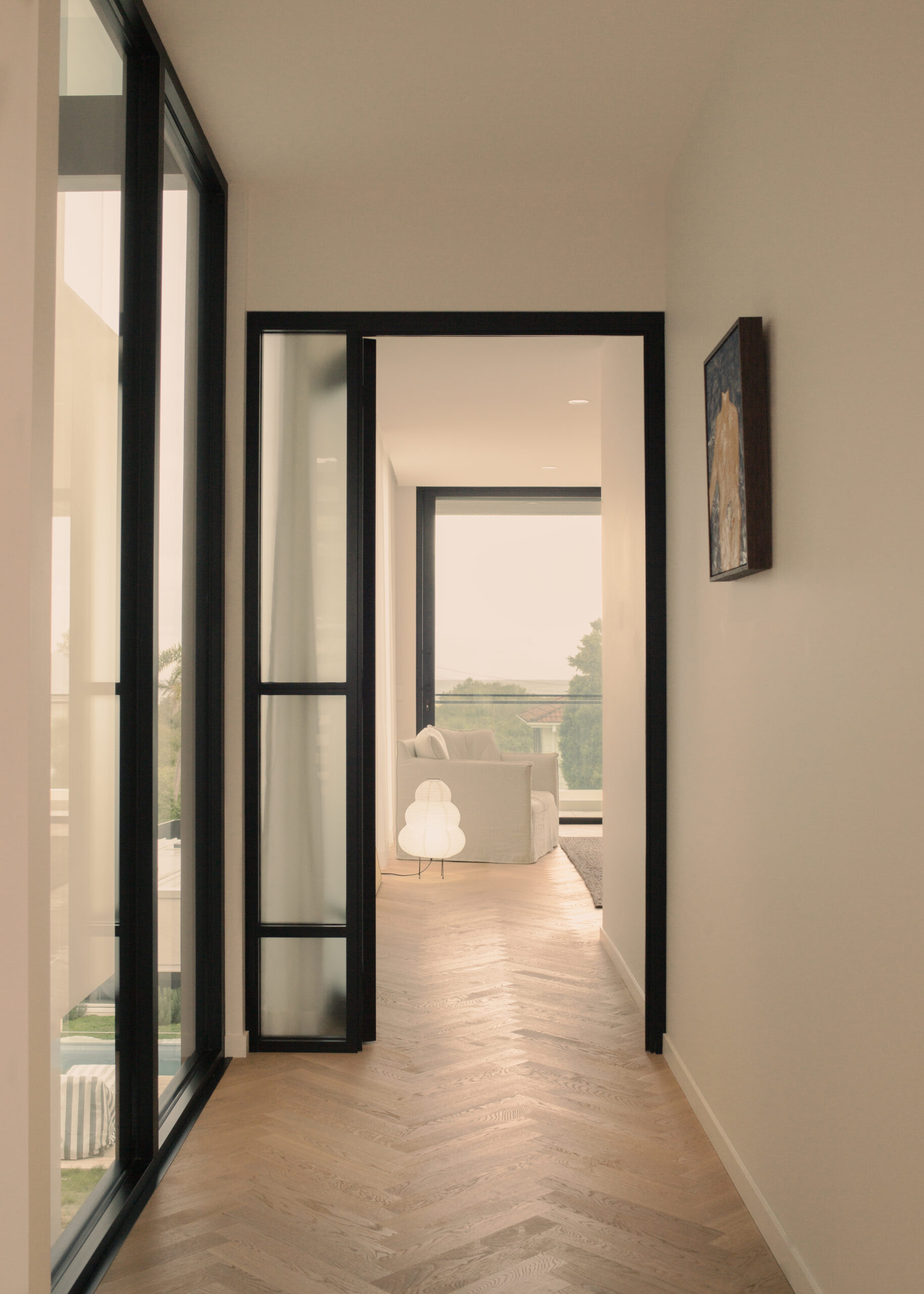There are moments of surprise throughout: a junction of textures, a bespoke element, a window framing the sea. Bold gestures are softened through proportion and restraint, allowing the overall experience to feel calm, grounded, and considered.