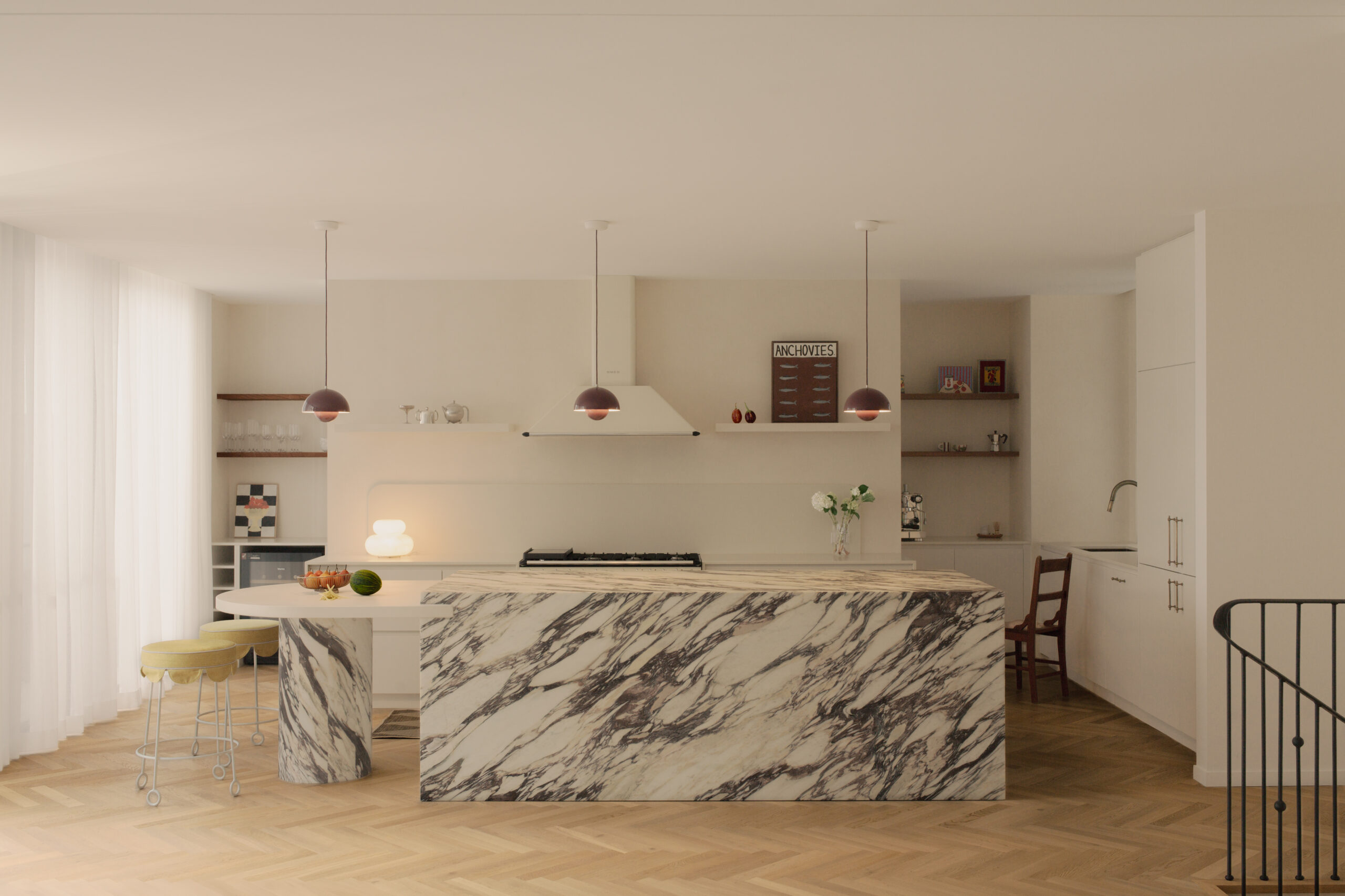 Our scope encompassed full-service interior design, including spatial planning, bespoke detailing, material refinement, furniture, lighting and object curation – delivering a layered family home that responds to site, light and lived experience.