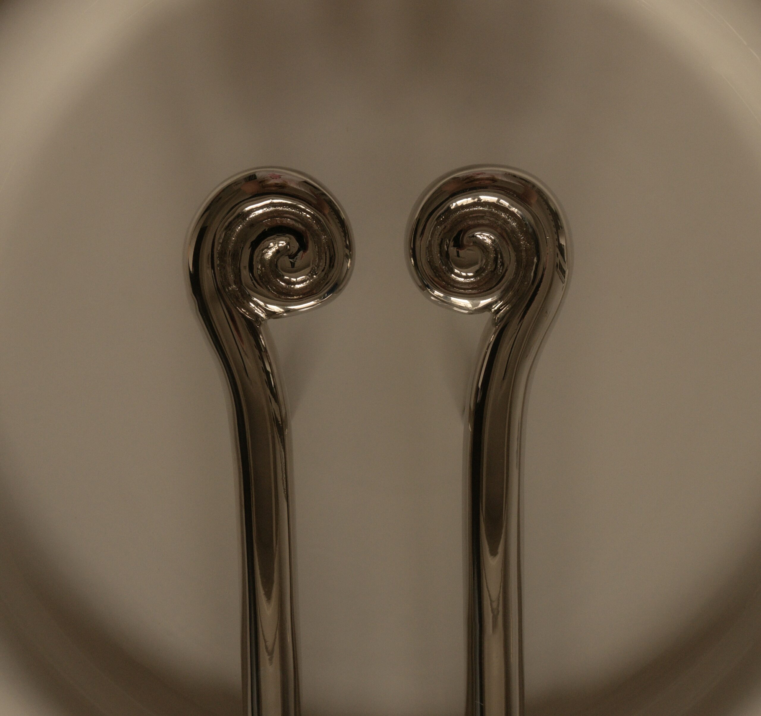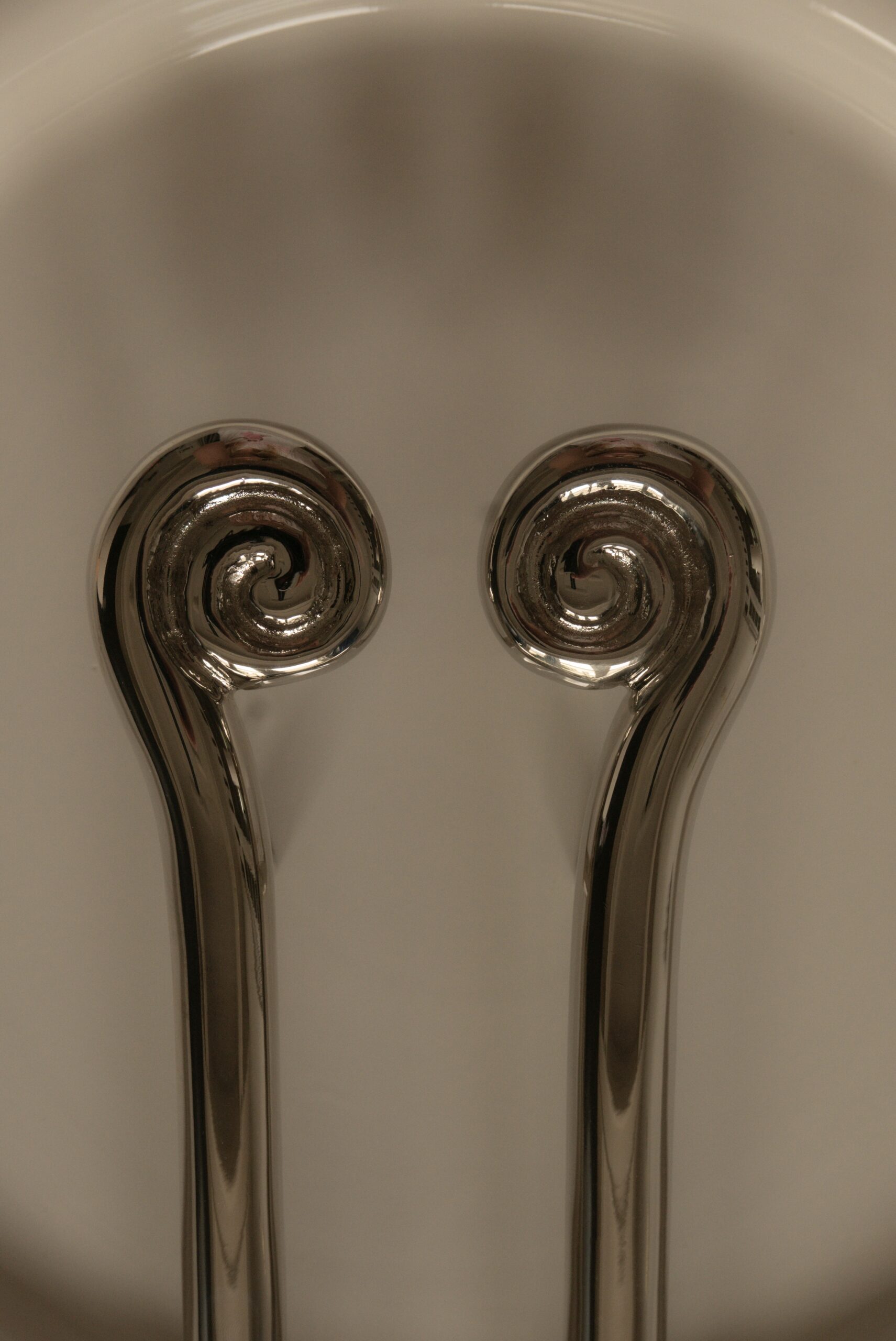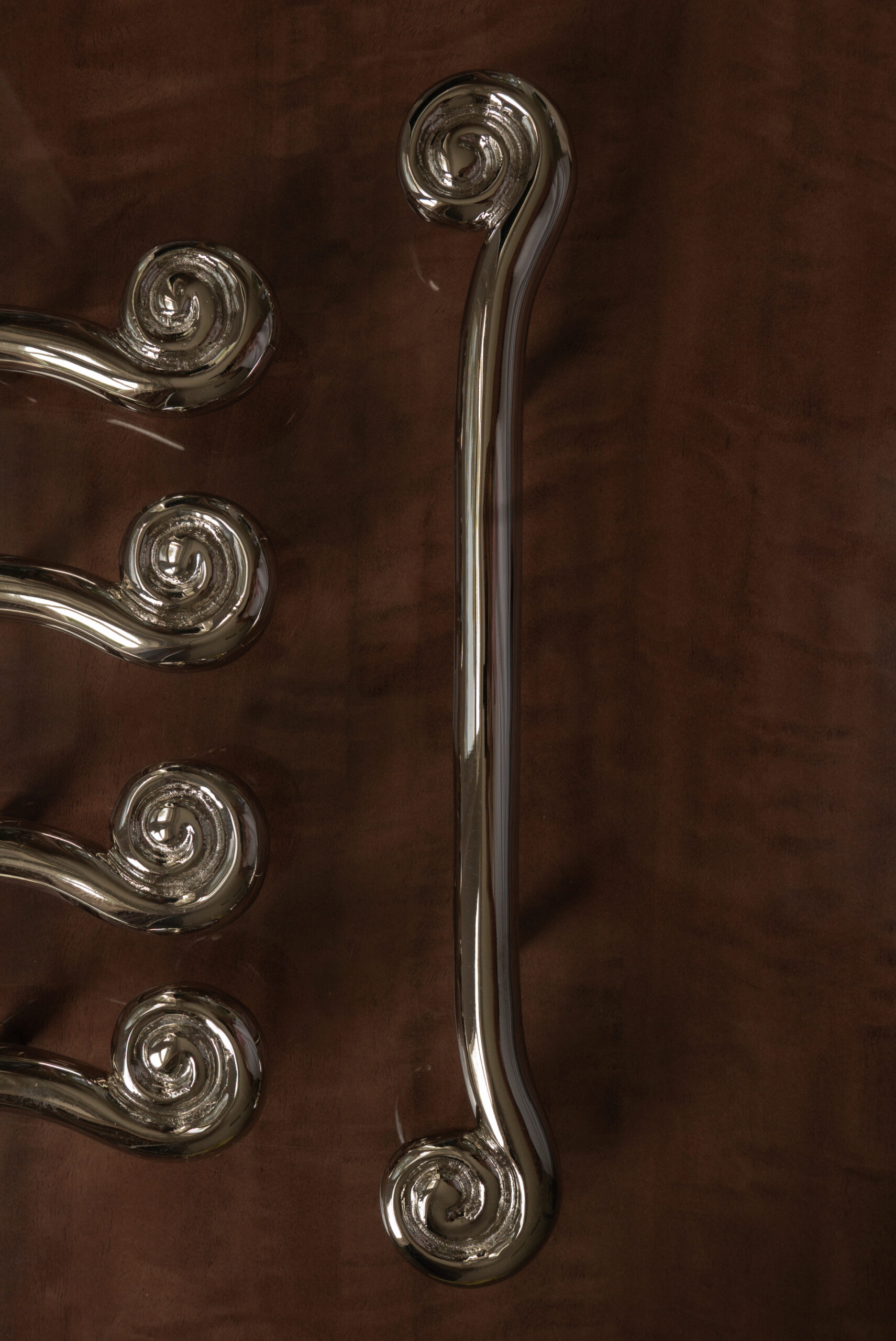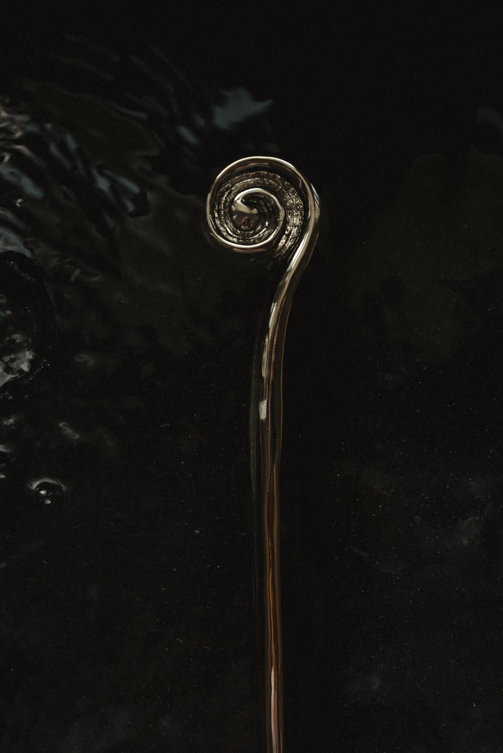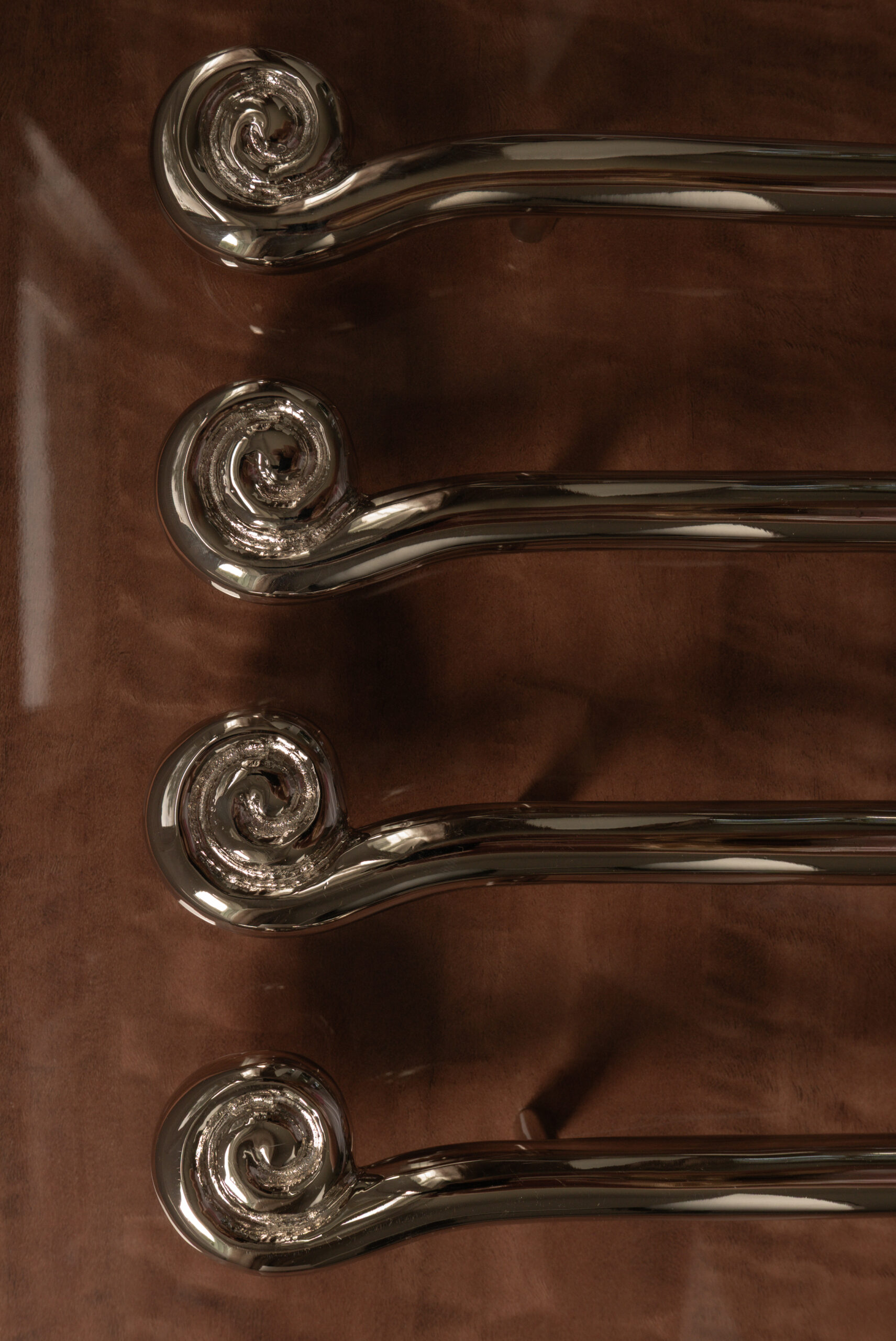 Cast in solid metal and finished in polished chrome, the Scroll is designed to bring softness, weight, and intention to cabinetry and joinery.